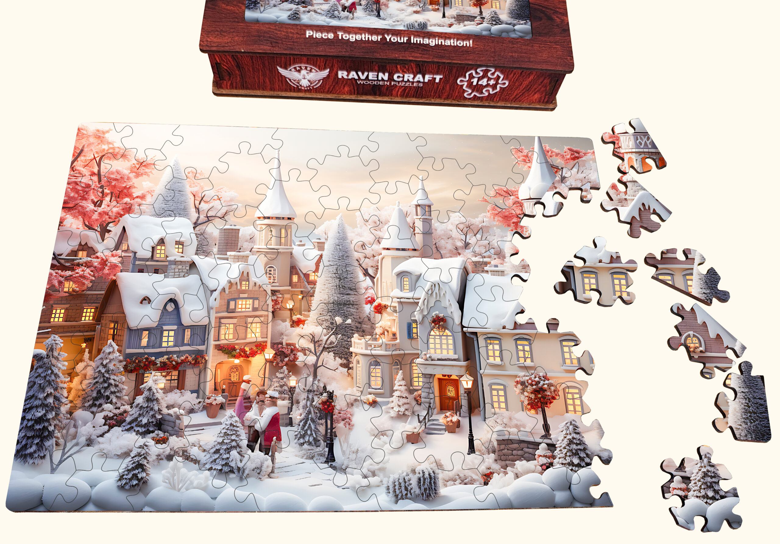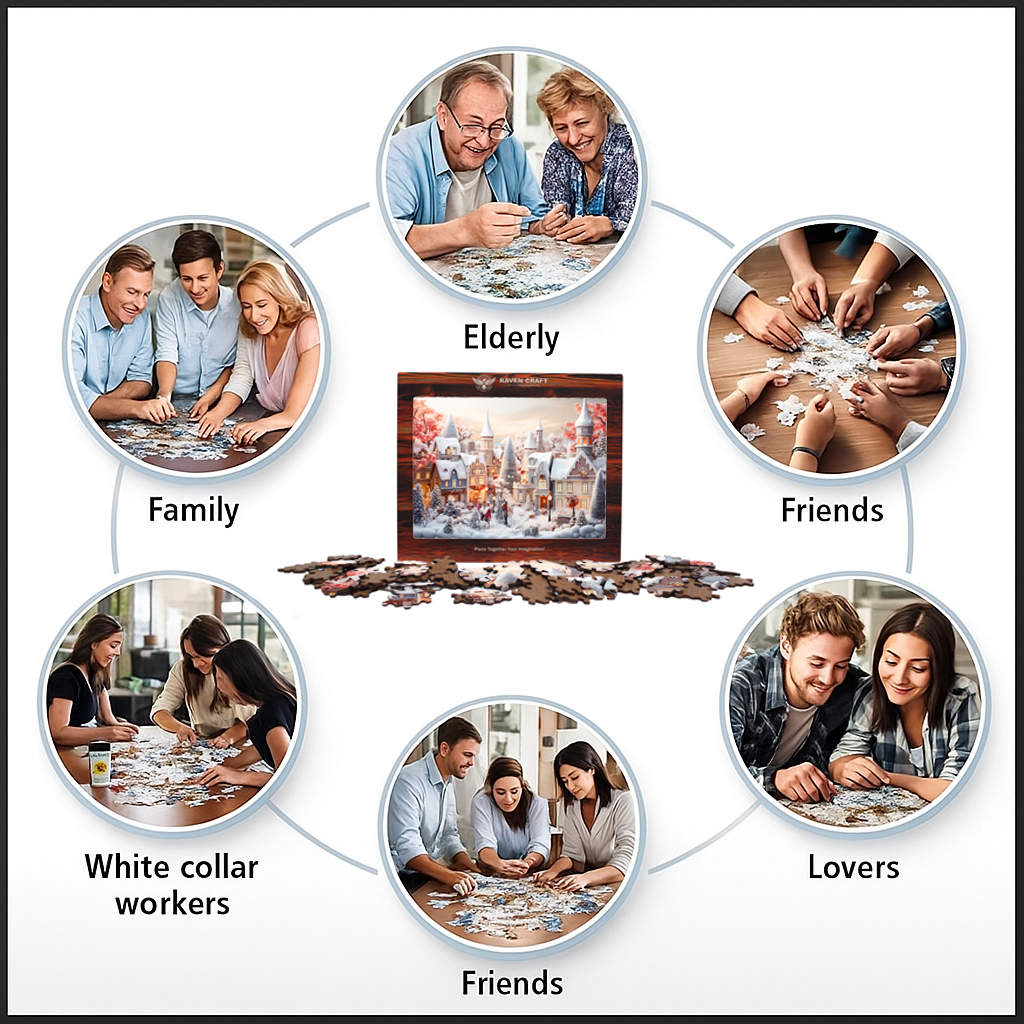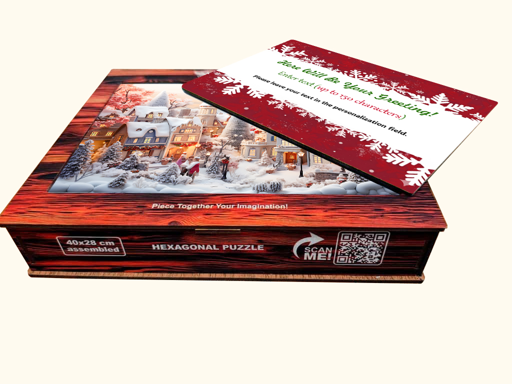 Give a gift that feels truly special. This wooden hexagonal puzzle comes with a personalized wooden greeting card, turning your message into a heartfelt keepsake. The puzzle features a charming winter town scene and is made from natural wood with smooth, laser-cut pieces that are satisfying to assemble. Its unique shape makes the experience relaxing and memorable, while the finished design looks beautiful as decor or a meaningful reminder of your gift. Perfect for Christmas, winter holidays, family gifting, or anyone who loves handcrafted wooden treasures.