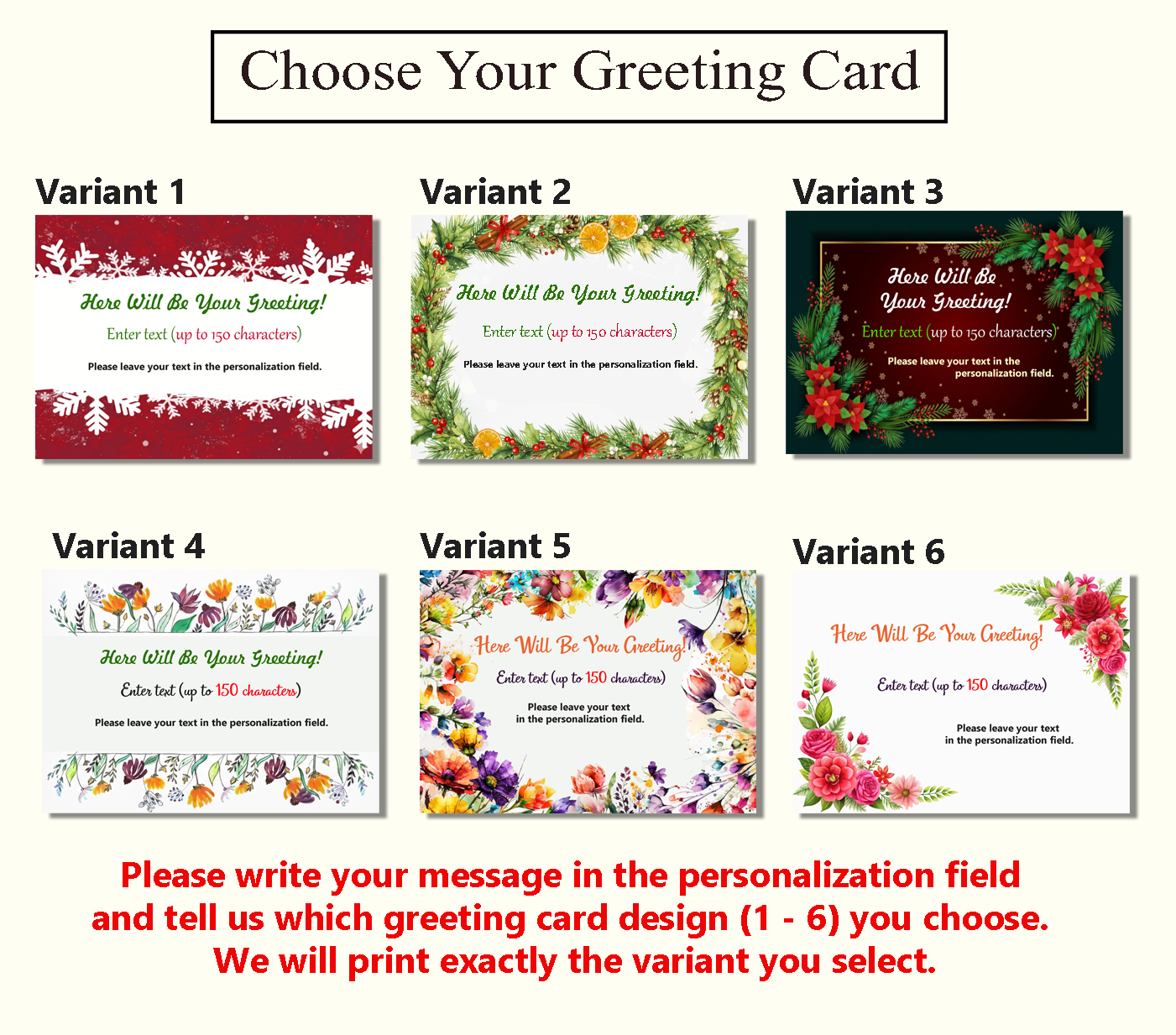 If you want personalization, please select it in the variations. Add an optional message on the wooden greeting card — a name, a short note, or holiday wishes, up to 150 characters.