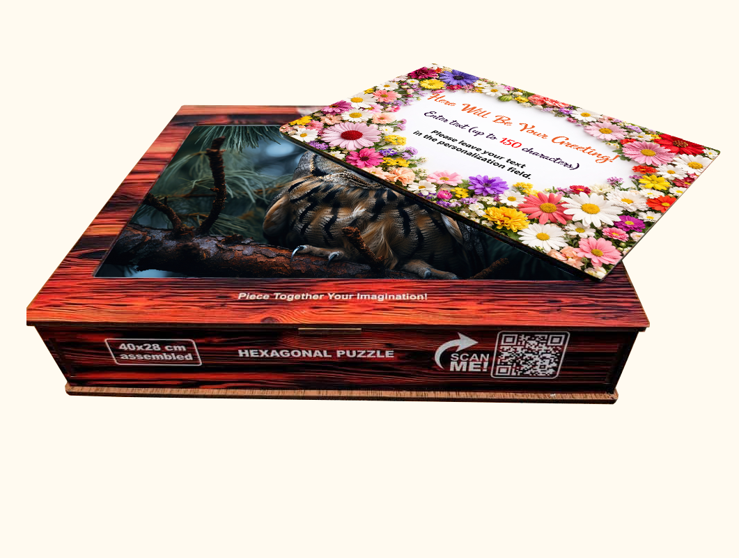 A magical wooden hexagon puzzle featuring a glowing owl in a midnight forest. Crafted from high-quality wood with richly detailed artwork, it’s both a calming puzzle and a striking piece of decor. Includes a personalized engraved wooden message card, making it a thoughtful keepsake for birthdays, anniversaries, Valentine’s Day, or meaningful everyday moments.
