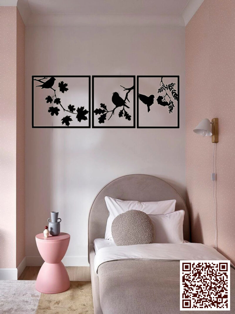 Elegante decorazione da parete “Uccello su ramo” – Set di 3 pezzi