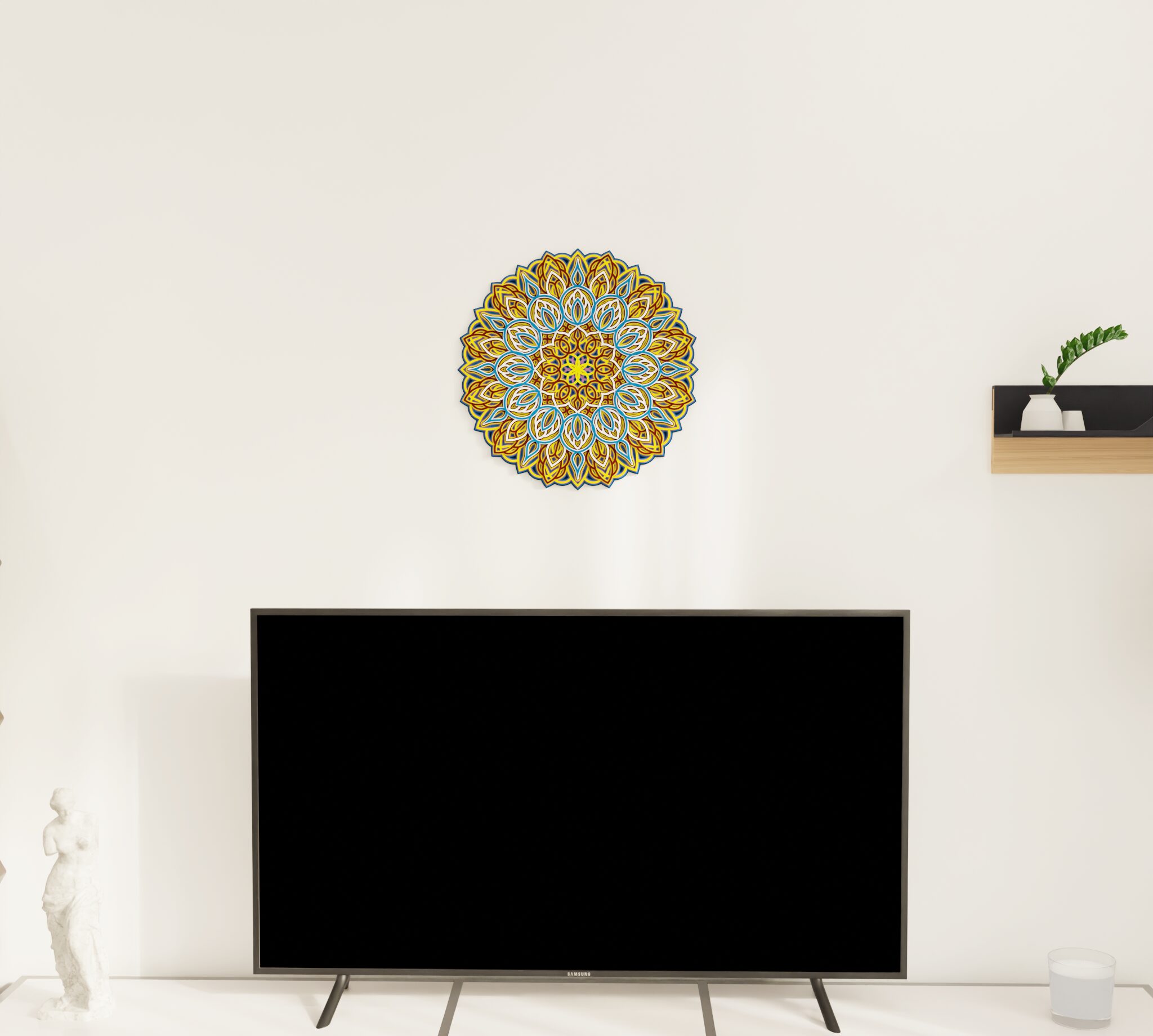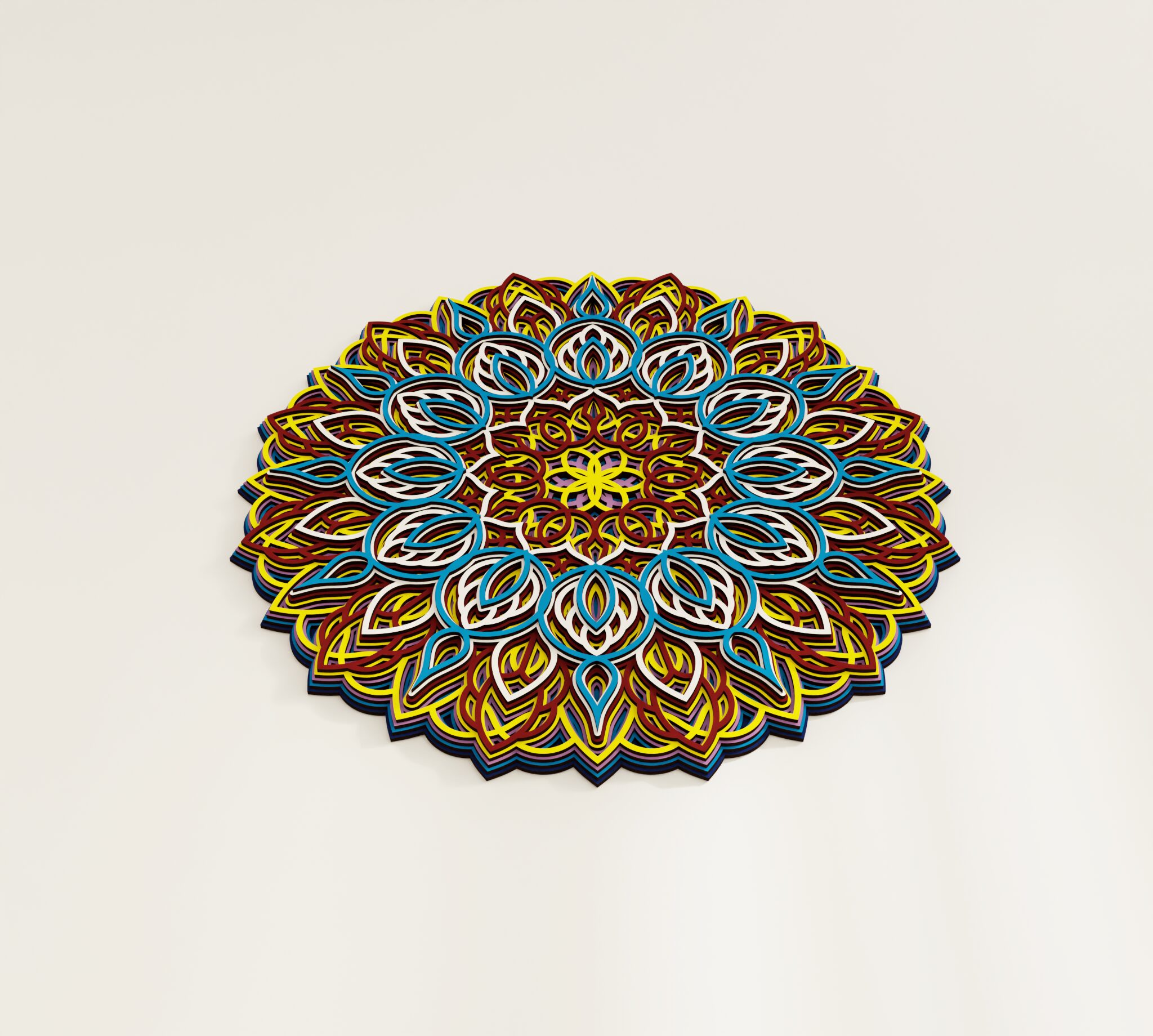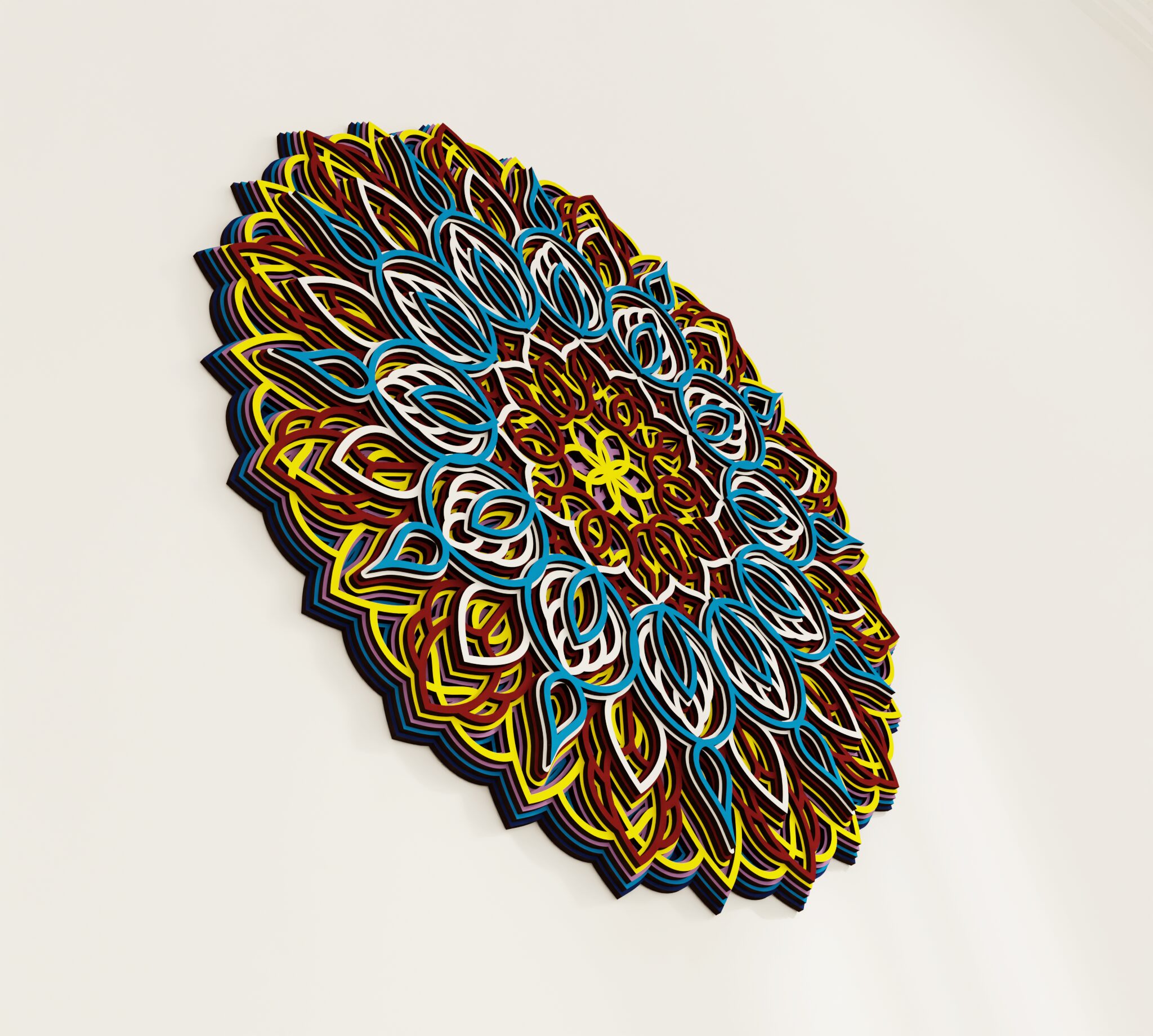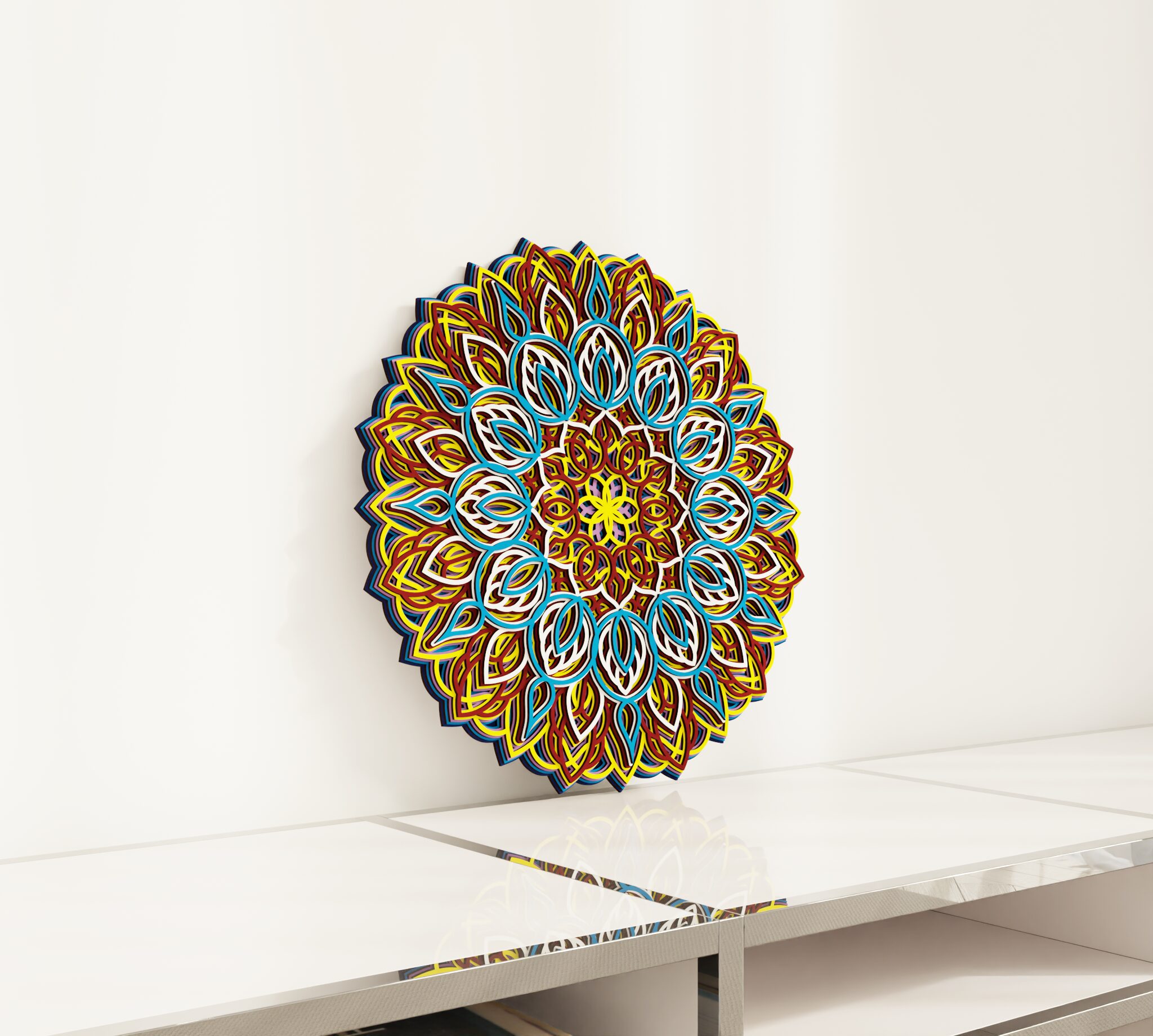 Bring refined character to your wall with this striking multilayer wall decor. Designed as a wooden mandala, it features a symmetrical round composition with carved decorative details and a layered structure that creates clear visual depth. The combination of natural wood and color gives the piece a rich, dimensional look that stands out without feeling heavy. It suits living rooms, bedrooms, entryways, or any interior where you want a decorative focal point with a warm premium feel. A distinctive wall piece for buyers who want decor that feels elegant, detailed, and easy to place.