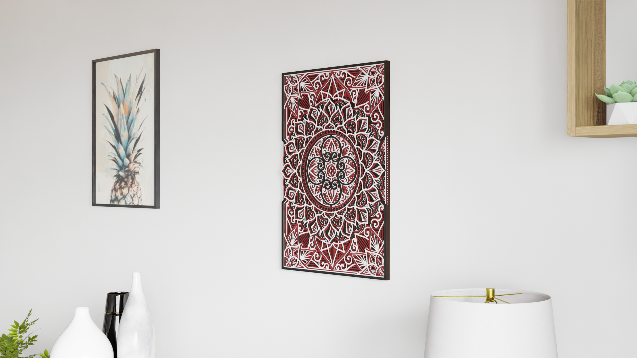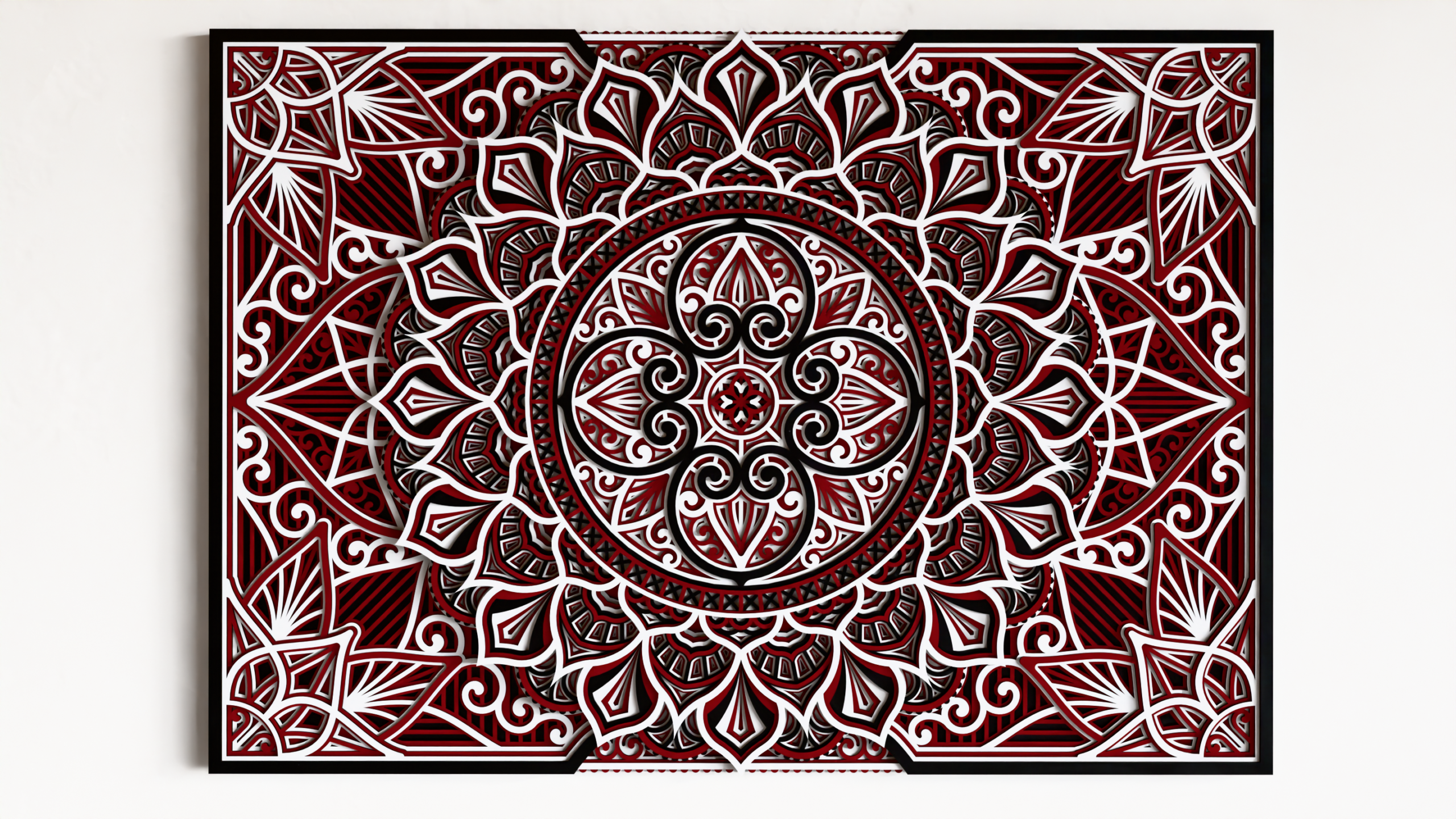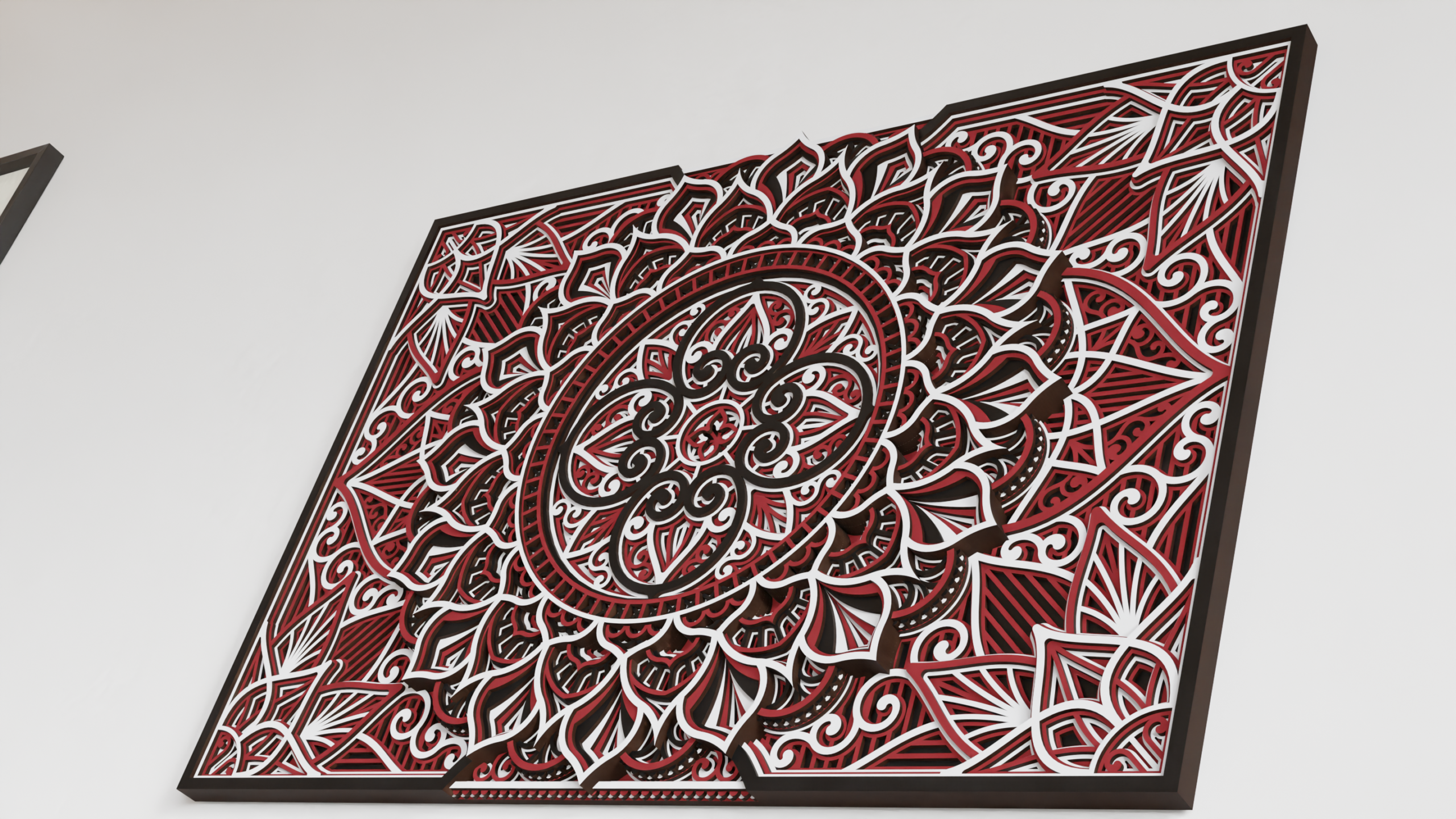 Multilayer Wooden Mandala in Red Floral Geometric Design