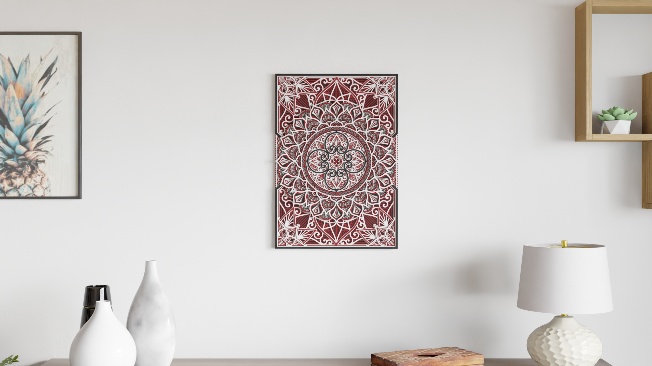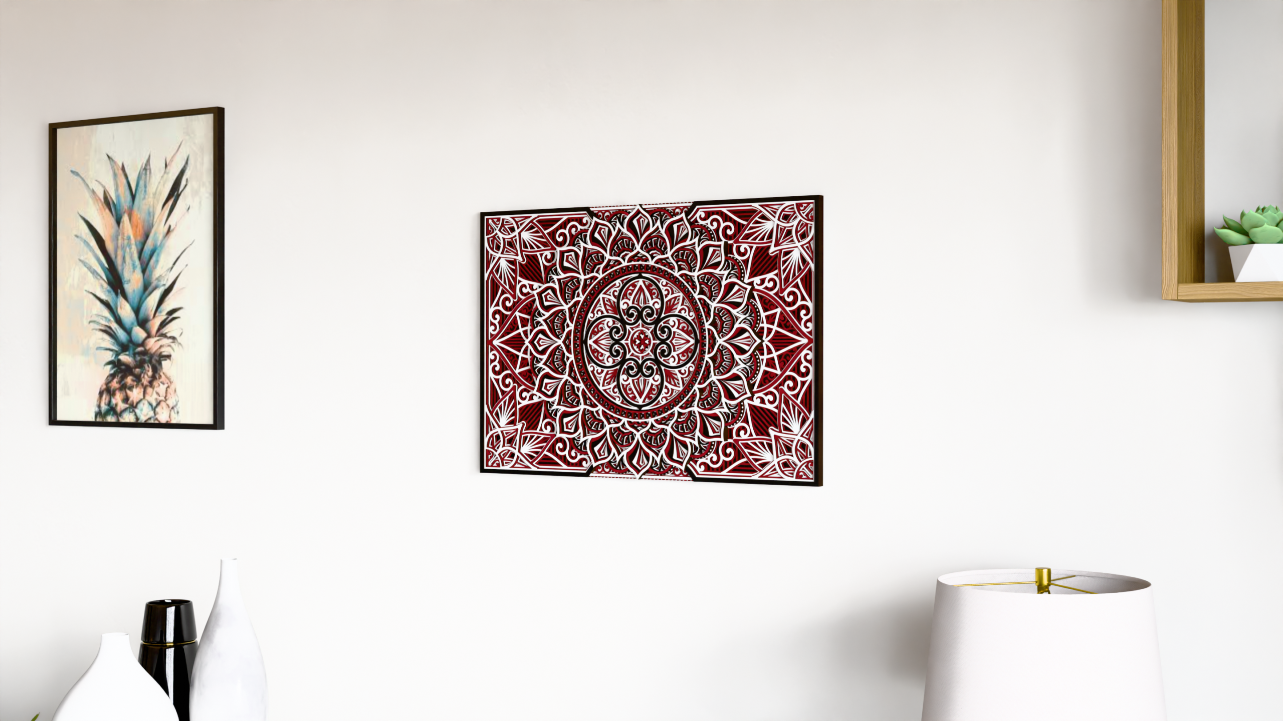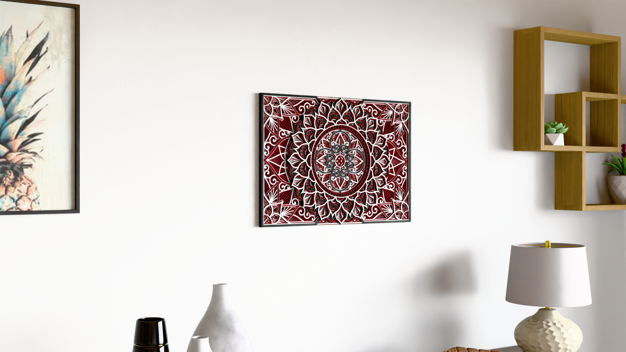Multilayer Wooden Mandala in Red Floral Geometric Design