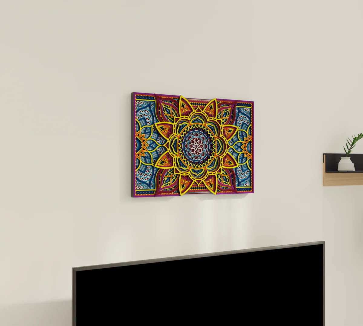 This multilayer wooden wall decor turns a classic mandala layout into a bold and elegant statement piece. Its symmetrical design, carved detailing, and visible layered structure give the artwork dimension and character, while the colorful finish adds energy without losing its polished look. Made from natural wood, it offers a decorative style that feels warm, expressive, and easy to place in modern or eclectic interiors. It is well suited for buyers searching for standout wall decor or a thoughtful gift with visual impact. Add it to your space when you want something decorative, distinctive, and easy to remember.